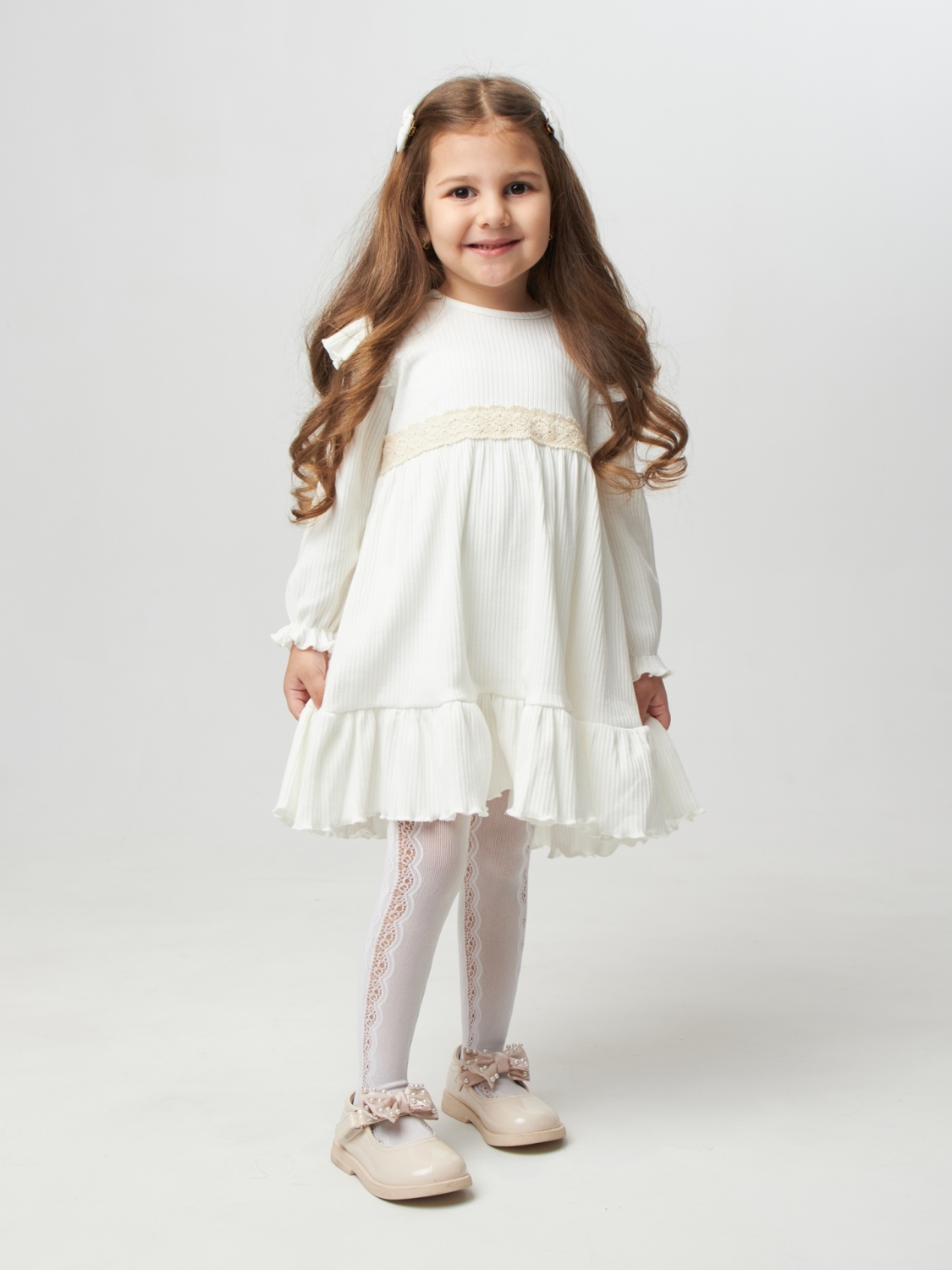 332. Платье детское из лапши, хлопок 100%, молочное, р. 98,104,110,116